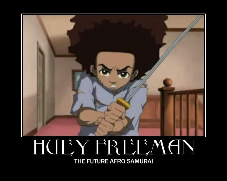 The Boondocks lleva absolutamente sus influencias en la manga, y una de las mayores influencias en la serie y sus personajes es el anime. La serie llama regularmente su amor por el anime, desde el hecho de que la apertura de la serie es una remisión de la apertura de hip hop del Samurai Champloo , y las secuencias de lucha que toman prestadas directamente de series de anime como Naruto . Una de las referencias más claras está en el diseño del personaje de Huey, ya que se parece al personaje titular de Afro Samurai . Incluso se le ve a menudo empuñando una espada.