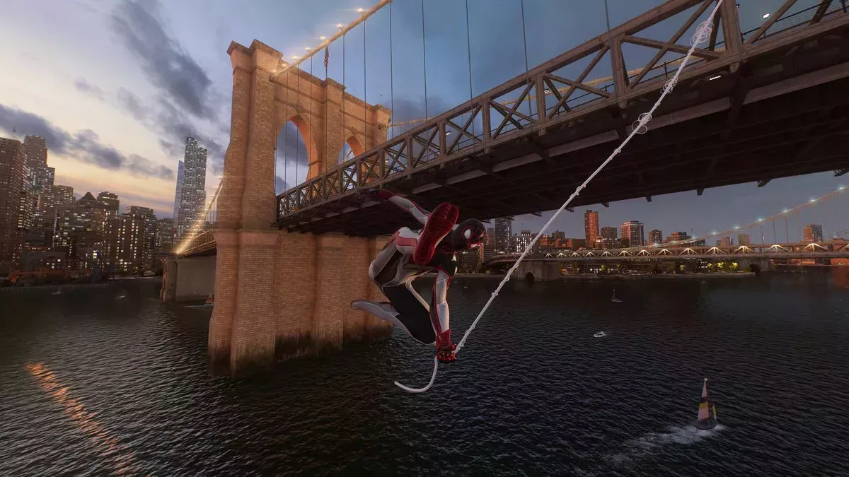es un placer recorrerlo como Peter Parker y Miles Morales, sobre todo con las nuevas alas web de los personajes, que les permiten planear entre cañones de cristal y sobre el East River hasta Brooklyn y Queens. No he viajado rápido ni una sola vez en mis 15 horas de juego, y tengo la intención de mantener esa racha, siempre y cuando el juego no me obligue a hacerlo. En otras palabras, dejaré el diseño del mundo a los expertos. Pero también puede que aparezca Red Hook.