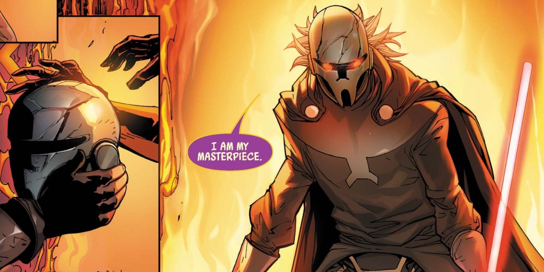 Hablando a través de los poseídos, Momin ayudó a construir el castillo de Vader en Mustafar, construyendo la fortaleza como un portal al lado oscuro de la Fuerza. Cuando el portal finalmente se abrió, el cuerpo de Momin salió del otro lado con un sable de luz rojo en cada mano. El cuerpo reclamó la máscara, y entonces Momin comenzó a cortar en pedazos a Vader.