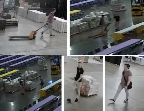Las grabaciones de seguridad mostraron a los dos hombres, que también coincidían con las descripciones de Dunbar y Giaume, trasladando las tarjetas desde el Centro de Convenciones de Indiana, pasando por un hotel, hasta el garaje, donde presumiblemente cargaron las cajas en un coche. Las grabaciones de seguridad mostraron entonces a los hombres saliendo del garaje con un carro vacío. La declaración jurada incluye incluso una foto del coche en el que se marcharon los hombres, un Nissan Murano 2023, circulando por Indiana con las cajas de cartón visibles en el maletero del coche. Al final, la policía pudo relacionar ese coche alquilado con Dunbar.