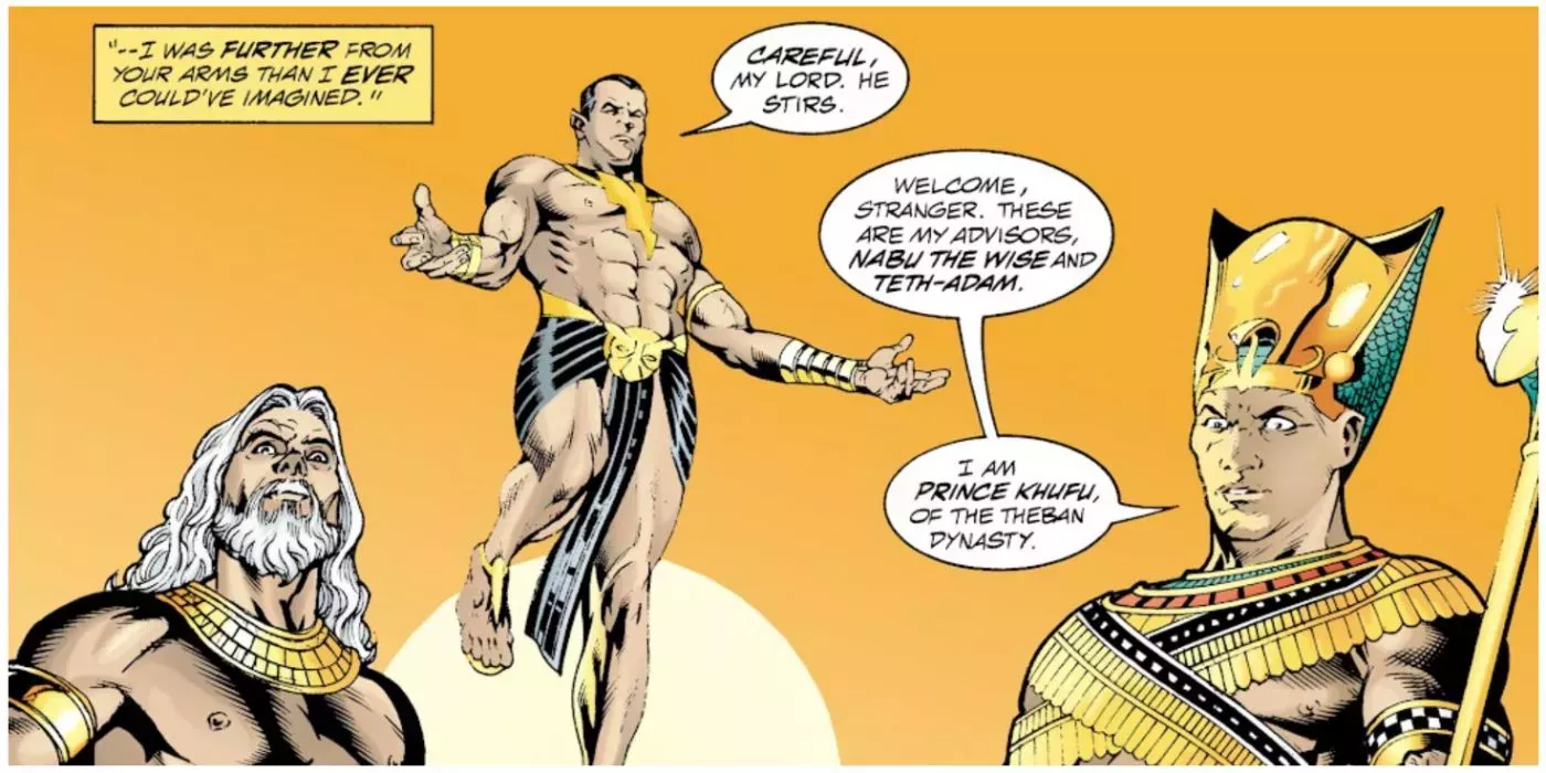 De hecho, Adán Negro fue testigo del acontecimiento más crítico de la vida de Khufu cuando ambos se encontraron con los restos de una nave thanagariana en el desierto. Al llevar la nave de vuelta al palacio de Khufu, Adán Negro y el Príncipe se convirtieron en los primeros humanos en examinar de cerca el Nth metal, el mismo material utilizado por Hawkman y otros Thanagarianos.