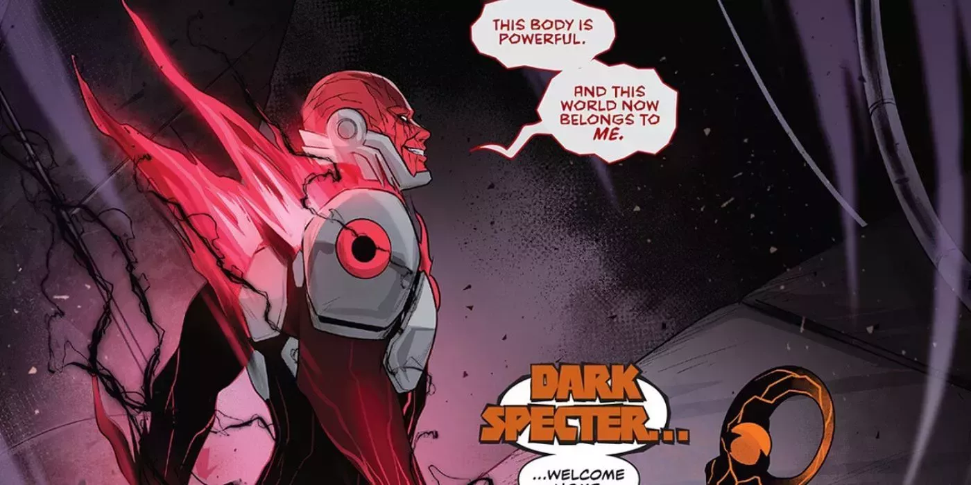 Dark Specter fue el principal antagonista de Power Rangers in Space y sirve como una nube que se cierne sobre toda la trama de "Darkest Hour". Al final del número 111 de Mighty Morphin Power Rangers, Matt pide a los Rangers que lo maten, y Mistress Vile consigue traer a Espectro Oscuro a su universo. "La hora más oscura" tiene muchos giros, incluido Lord Zedd convirtiéndose en el Ranger Z, pero la llegada de Espectro Oscuro es ominosa y aterradora.