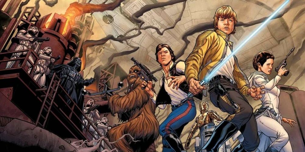 La principal serie de cómics que está siendo lanzada por Marvel Comics fue escrita originalmente por Jason Aaron, y más tarde fue asumida por Kieron Gillen. Ambos creadores aportaron mucho a la historia, añadiendo algunas historias importantes que se basan en la saga general. Esta serie presenta a todos los amados personajes de las películas, especialmente a Luke Skywalker. En última instancia, la serie de cómics se desarrolla principalmente entre Una nueva esperanza y El imperio contraataca.