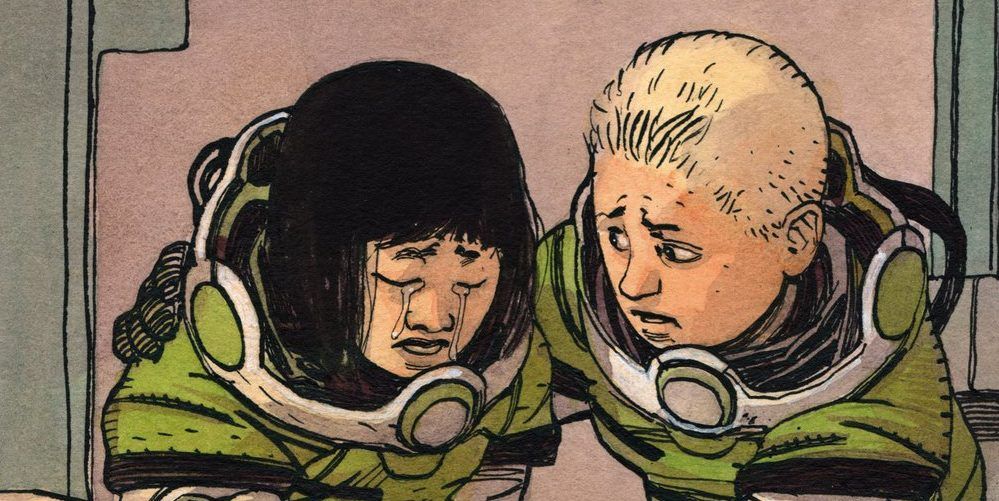 Detrás de los barcos con forma de pez y las ruinas flotantes de los edificios antiguos, Mia y su nueva tripulación reparan las estructuras a su alrededor y entre ellas. Desplácese por las páginas de arte interestelar mientras se pierde en la visión de esta novela gráfica sobre la escuela, el espacio y el sentimiento.