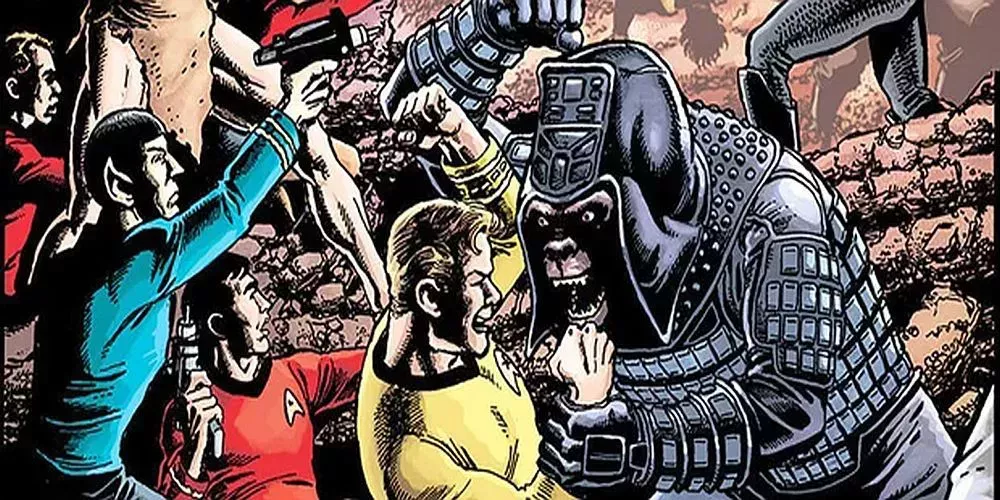Con la misión de explorar nuevos y audaces mundos, la tripulación original del Enterprise de Star Trek se sorprendió al encontrarse en una nueva y cambiada versión de la Tierra, gobernada por simios. Tras cruzar esta nueva dimensión, Kirk se encontró cara a cara con George Taylor, que buscaba la ayuda del capitán para derrocar a los simios.