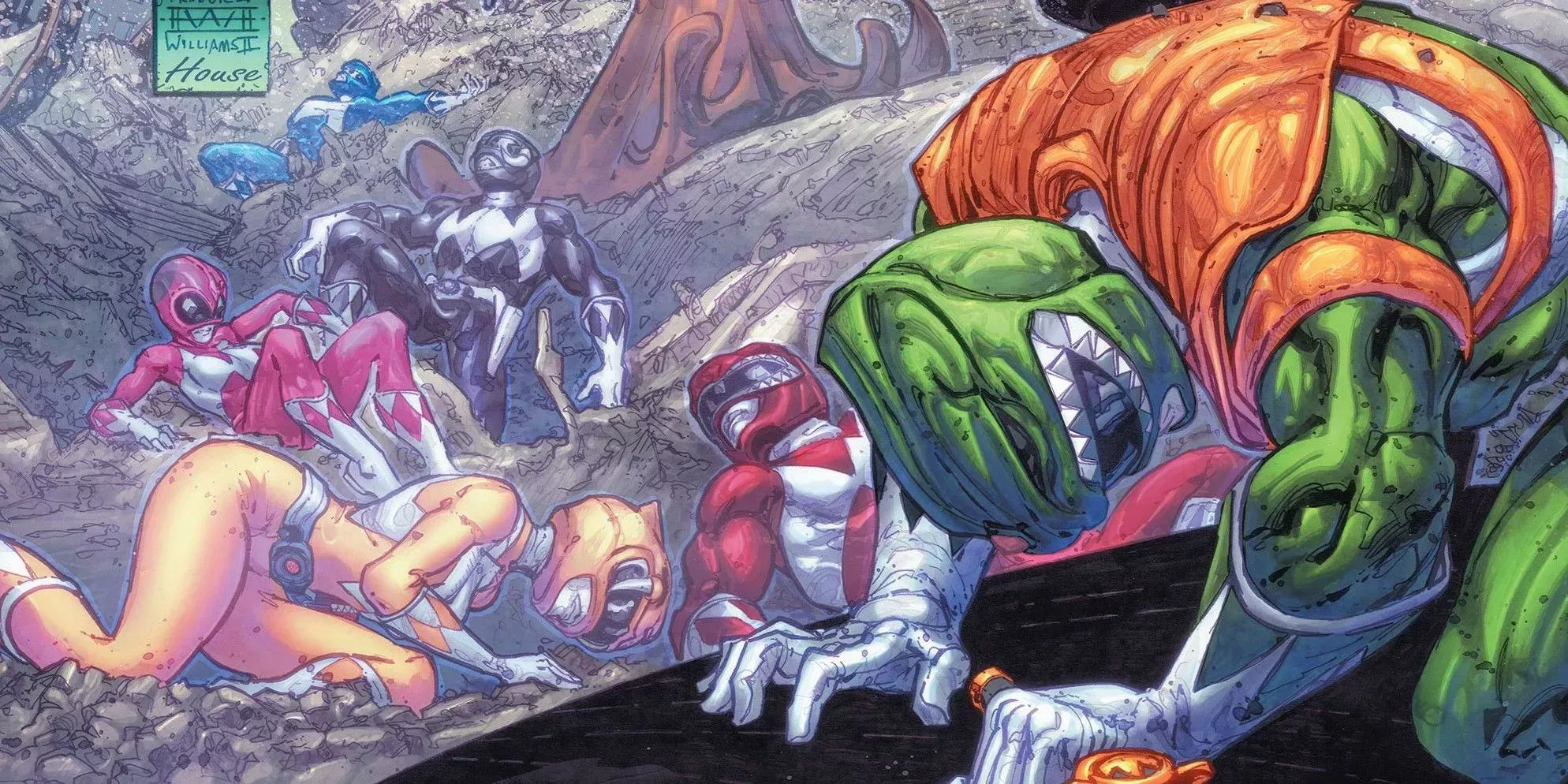 ¡Como una de las propiedades más exitosas de Boom! Studios, los Mighty Morphin Power Rangers fueron naturalmente la primera opción para algunos de los mayores crossovers de la compañía. El mejor de ellos fue la revisión de su clásico crossover televisivo con las Tortugas Ninja Mutantes Adolescentes para una aventura compartida.