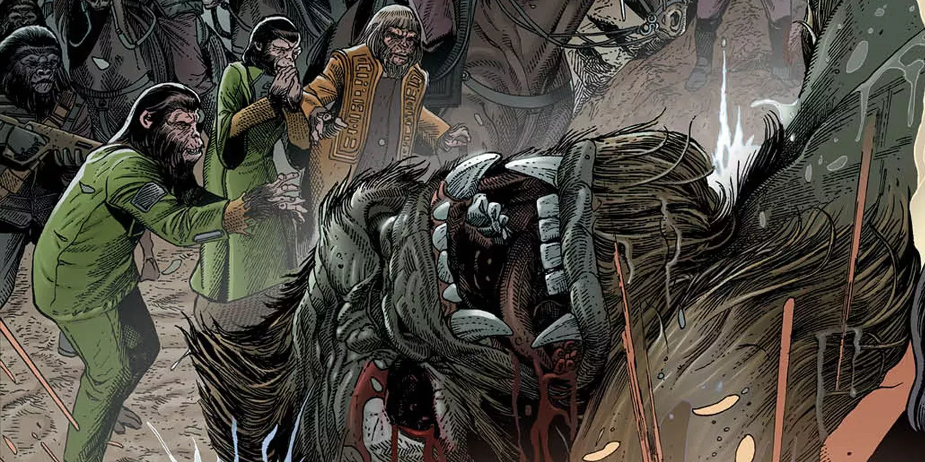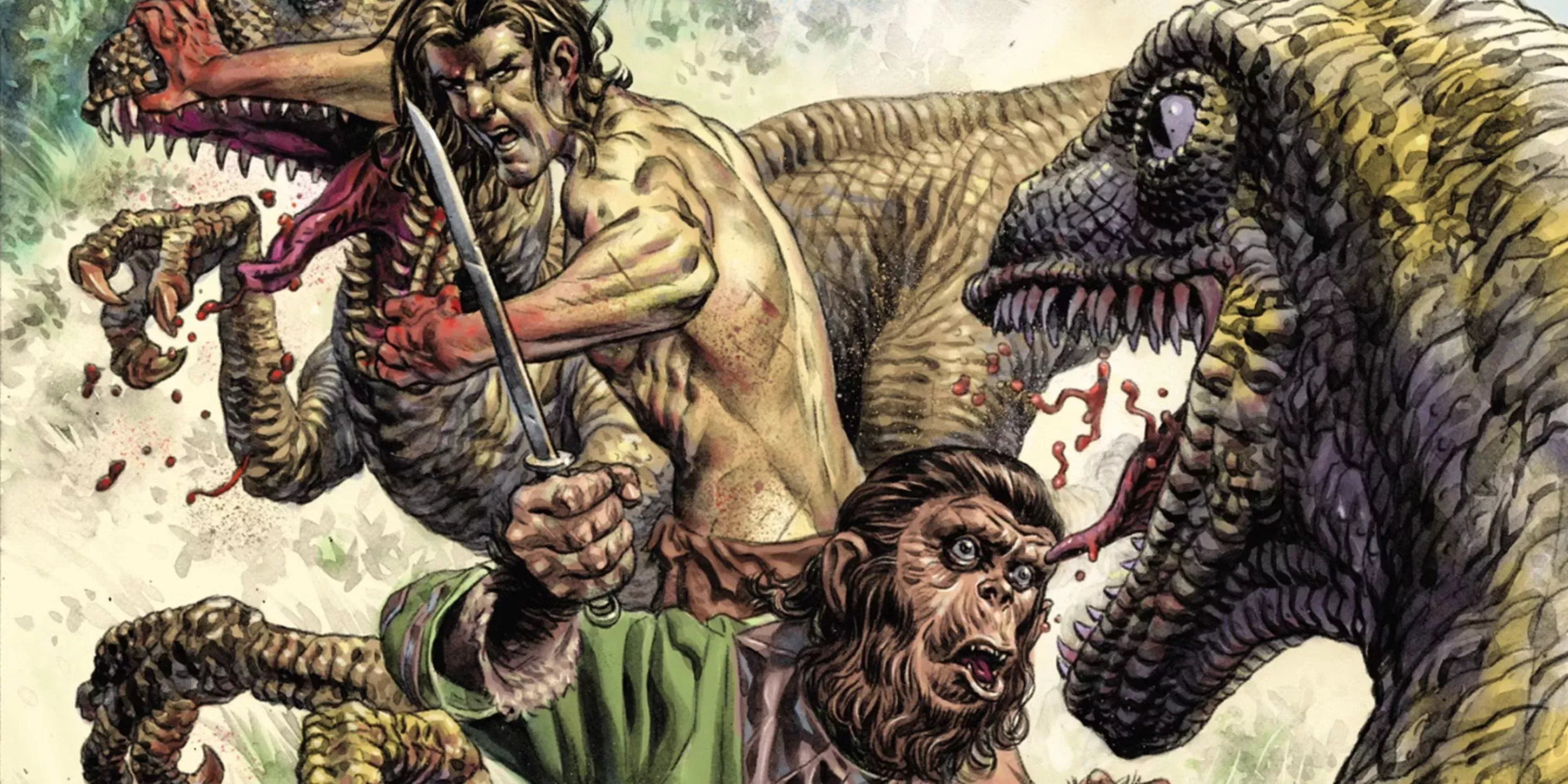 En colaboración con Dark Horse, Tarzán en el planeta de los simios trasladó al icónico héroe de la selva de Edgar Rice Burroughs al futuro distópico de ciencia ficción de la humanidad simia. La serie reimaginaba las historias de ambos mundos, revelando que Tarzán y César fueron criados como hermanos y posteriormente separados por esclavistas.