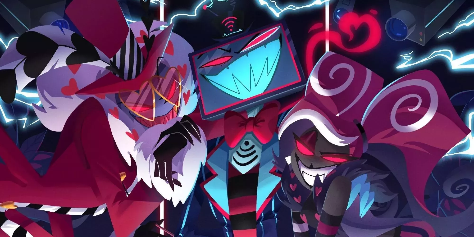 Este trío destaca por lo moderno que es. Intentan llevar el Infierno a una nueva era y utilizar su tecnología, moda e influencia para superar a los demás Overlords. Controlan la mayor parte de la industria del entretenimiento del Infierno, lo que les convierte en figuras extremadamente poderosas que la mayoría de los demonios conocen e incluso idolatran. Vox está enemistado con Alastor, el Demonio de la Radio, y Valentino es una fuente constante de angustia para Angel Dust. Tanto Alastor como Angel Dust son personajes principales recurrentes y compañeros de Charlie.
