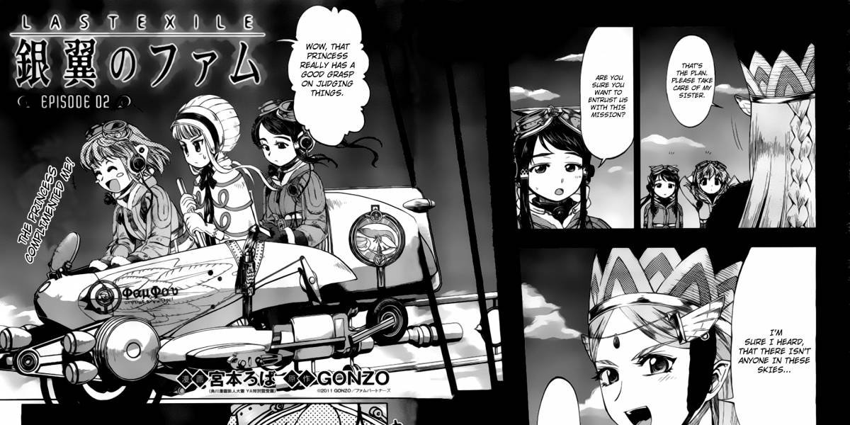 Aunque Last Exile es probablemente más reconocido como una serie de animación, hay, de hecho, un par de volúmenes de manga, que tienen lugar después de la conclusión de la serie original. Escrito por Gonzo e ilustrado por Robo Miyato (Last Exile: Fam, The Silver Wing) y Minoru Murao (Last Exile: Travelers From The Hourglass), la serie se desarrolla en el mundo de Prester.