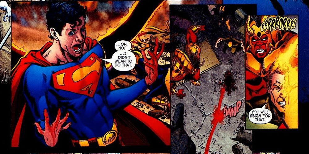 Hasta este punto, Superboy es mayormente un imbécil llorón que se queja de Conner Kent. La lucha de Conner para decidir si tiene alma o no lo enfurece, y los dos terminan peleándose en Smallville. La batalla se intensifica cuando llegan más superhéroes.