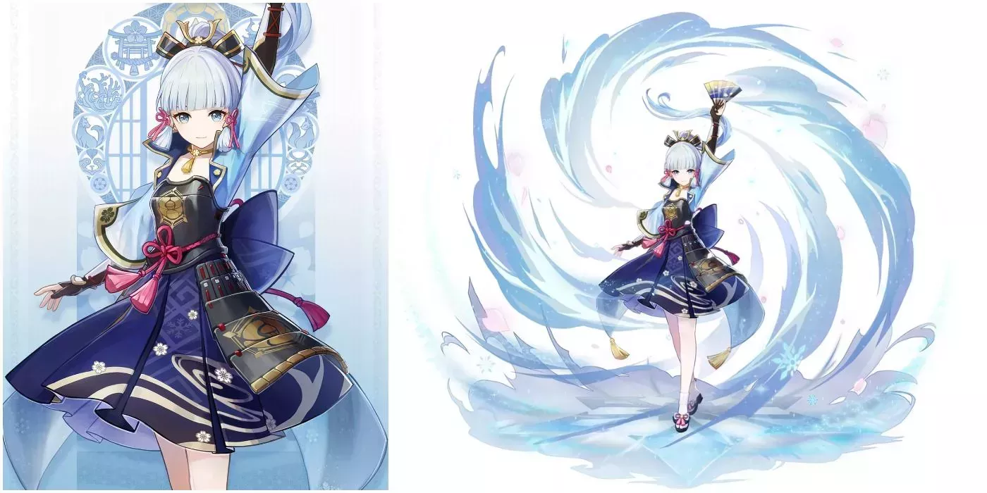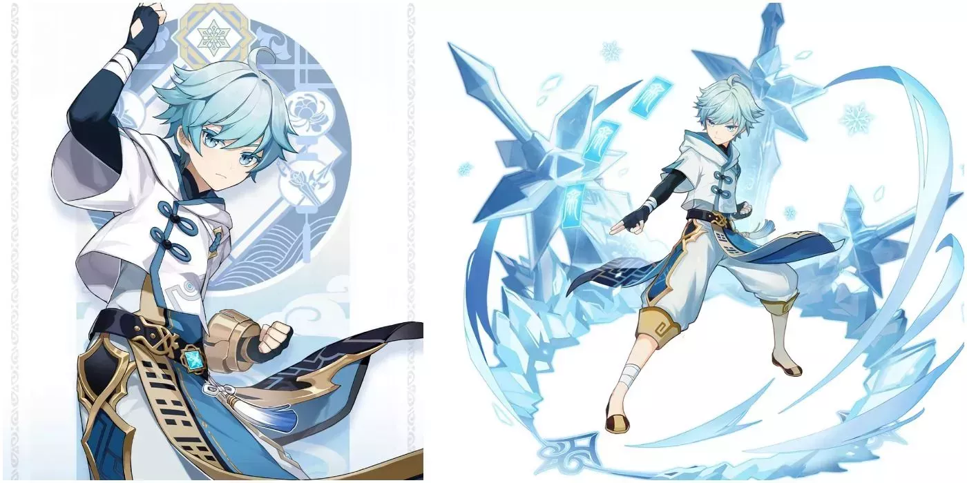 Arte Kamisato: Soumetsu invoca un muñeco de nieve que desata una tormenta de viento helado que daña a los enemigos y explota, infligiendo más daño, al final de su duración. Arte Kamisato: Senho es un ingenioso ataque de sprint alternativo que envuelve a Kamisato en una niebla de hielo. Cuando reaparece, congela a todos los enemigos cercanos y sus ataques normales con la espada reciben crio-daño durante un breve periodo de tiempo.