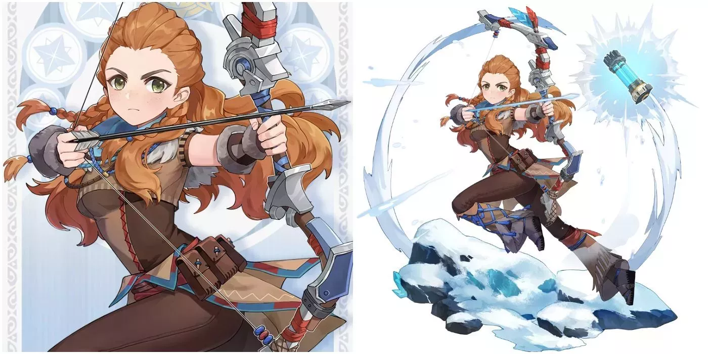 Como parte de un evento cruzado con Guerrilla Games, los jugadores desbloquearon a Aloy, la protagonista de Horizon Zero Dawn y Horizon Forbidden West. Tiene un ataque de arco normal de cuatro disparos, así como una flecha de precisión cargada y una descarga de flechas AoE.