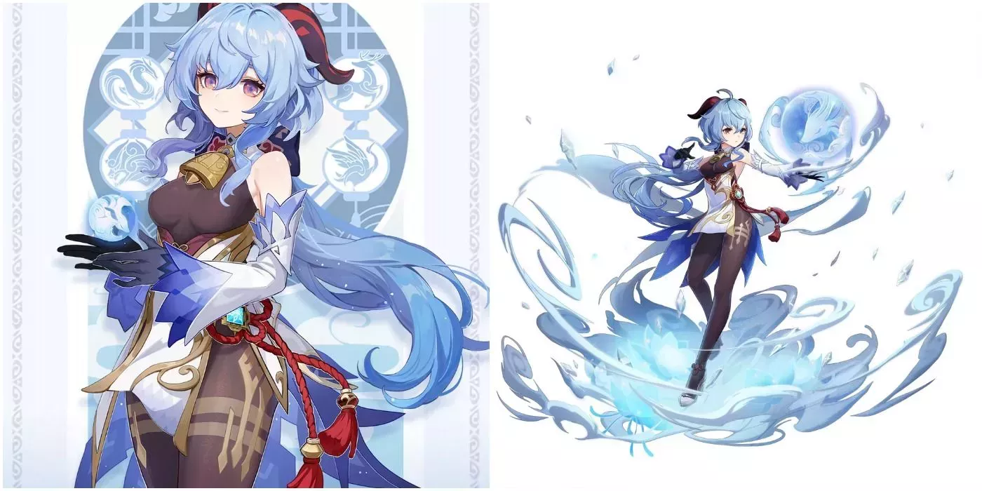 Ganyu es la secretaria general del Liyue Qixing y maneja un arco con hasta cinco disparos consecutivos como ataque normal. Su ataque cargado puede disparar dos flechas diferentes según el nivel de carga. El nivel uno es una flecha de hielo, mientras que el nivel dos es la flecha copo de escarcha que explota al impactar.