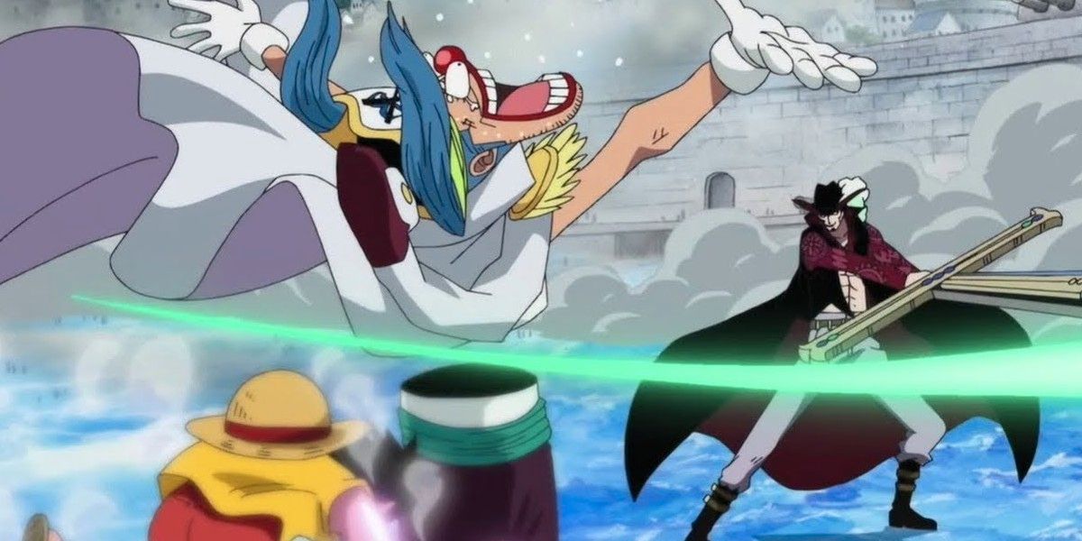 El espadachín más fuerte del mundo de One Piece, Dracule Mihawk también estuvo presente en la Guerra de Paramount, como todos los demás Shichibukai de la época. Mihawk hizo muy poco en Marineford y sólo se enfrentó a unos pocos piratas.