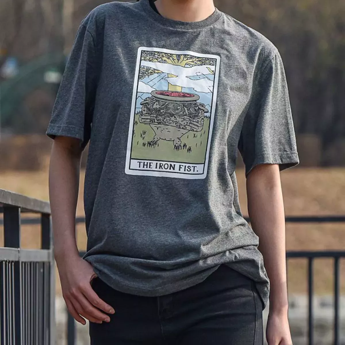 Esta camiseta luce el orgulloso rostro de Alexander Puño de Hierro al estilo de los arcanos mayores. Llevar esta cómoda camiseta de corte relajado te dará fuerza cuando más la necesites.