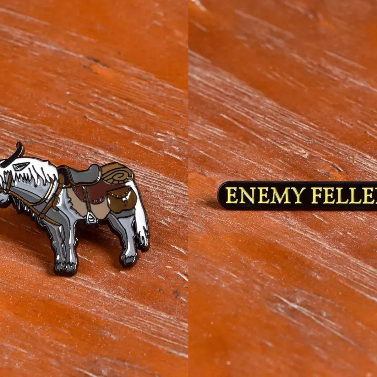 Si buscas detalles temáticos para tu bolso o chaqueta, Insert Coin fabrica un par de excelentes pins de esmalte con la forma de tu fiel montura, Torrent, y dos de las palabras más dulces de la lengua inglesa.