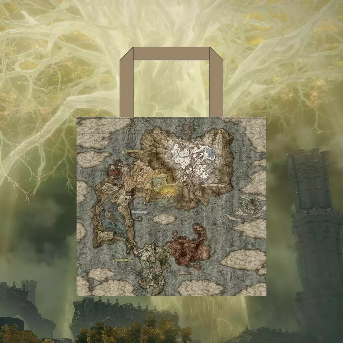 Esta sencilla bolsa de mano presenta el mapa del mundo de en un lado y el logotipo del juego en el otro.
