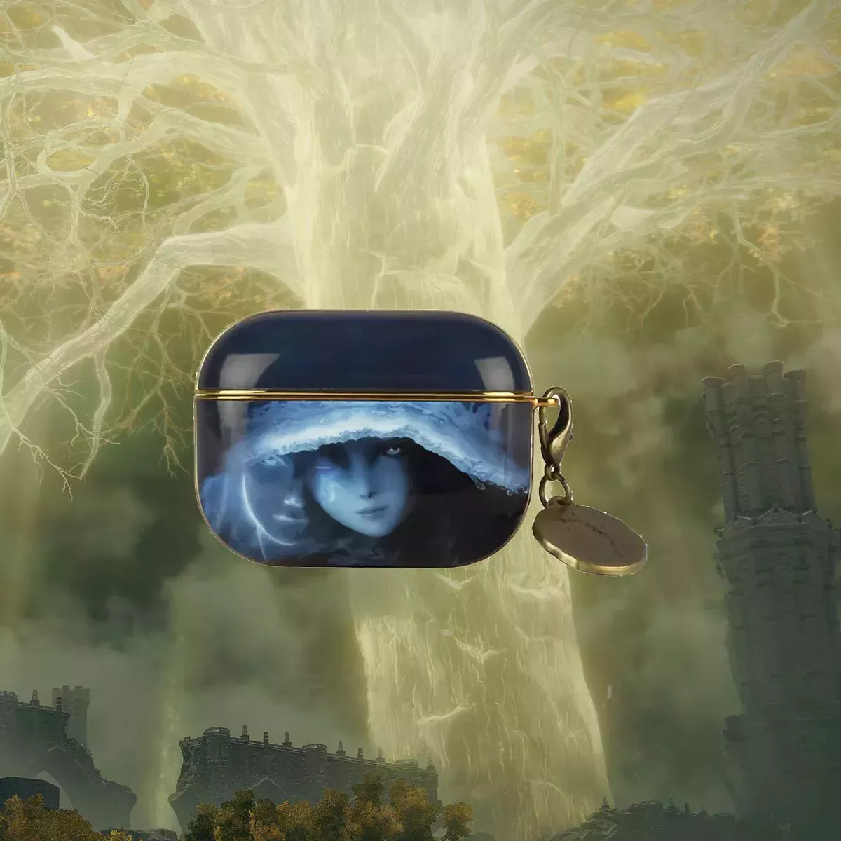 Este estuche brillante para los AirPods Pro con detalles dorados muestra el rostro de la princesa lunar Lani e incluye un pequeño colgante con la cicatriz de la maldición de la muerte.