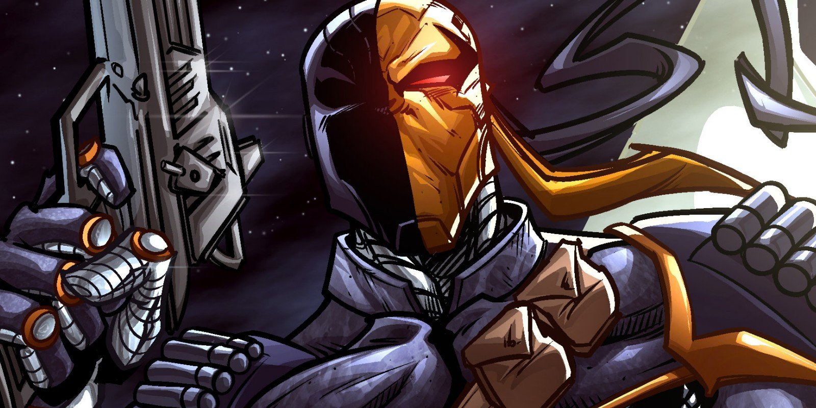 Deathstroke apareció por primera vez en New Teen Titans #2. Sirvió en Corea en la primera parte de su carrera, entrenando a niños soldados para ganarse la vida. Deathstroke, por naturaleza, es un mercenario sin corazón. Mientras le paguen, matará a casi todo y a cualquiera.