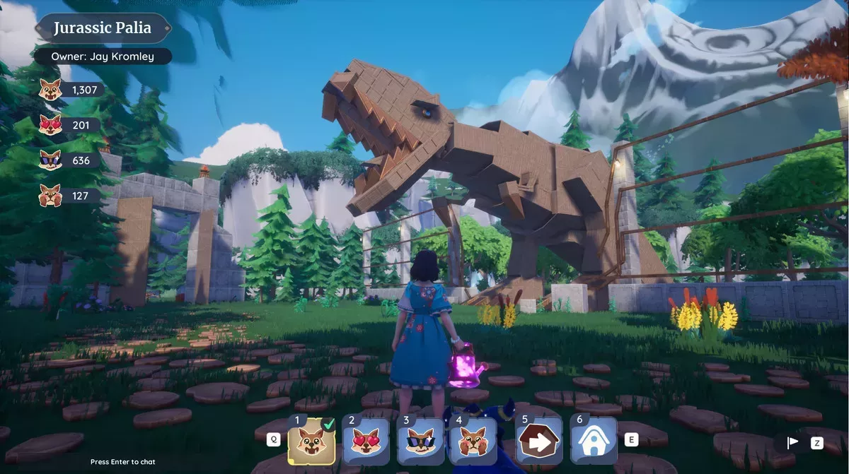Aunque el juego empezó con habitaciones prefabricadas, el desarrollador Singularity 6 ha añadido ladrillos, columnas, suelos, paredes y otros elementos de construcción básicos que no están vinculados a una estructura mayor. Por mi parte, aún no he descubierto cómo hacer que funcionen, pero Jay Kromley ha conseguido crear Jurassic Palia. Asà es, un T-Rex hecho de cajas de madera alineadas por un cuidadoso arquitecto.