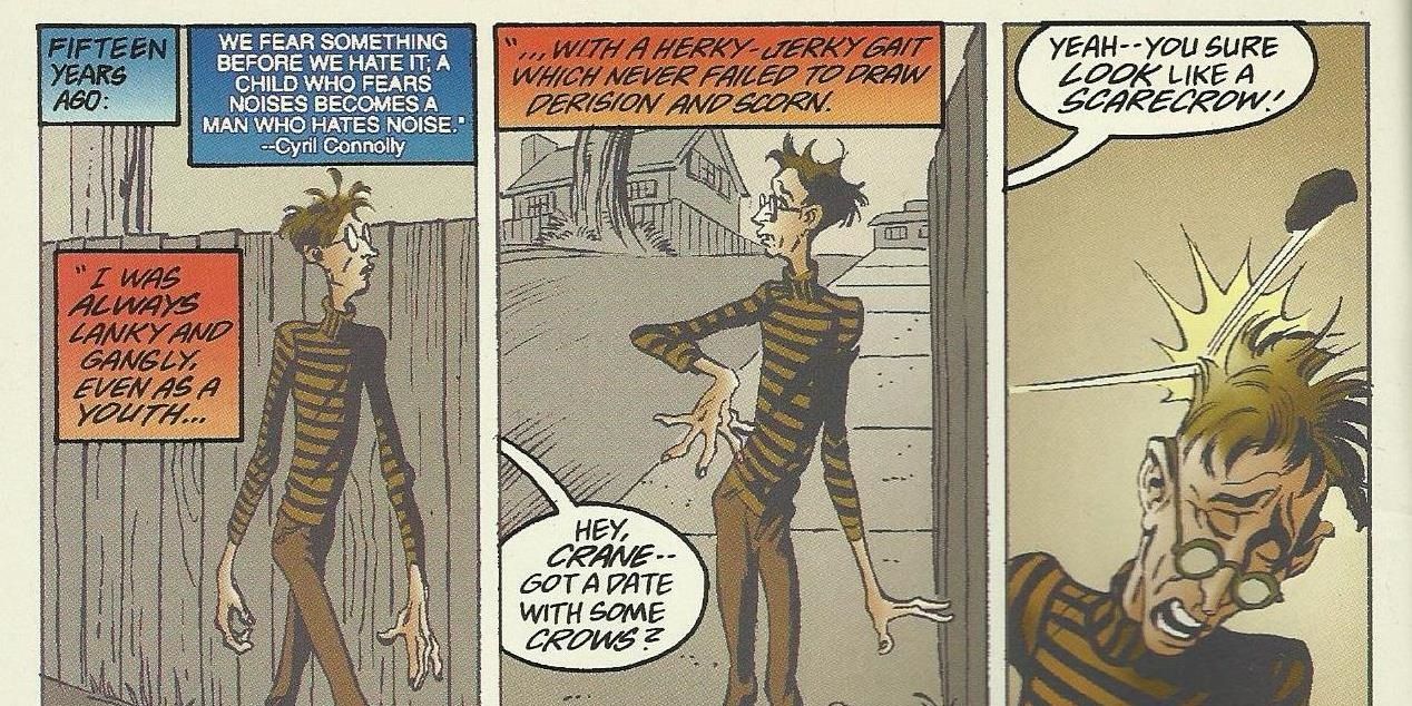 Jonathan Crane era un individuo innatamente más débil y temeroso que fue influenciado negativamente por la ignorancia de su familia. Durante la escuela primaria y secundaria, Crane se tomaba muy en serio la intimidación y terminó orquestando la muerte de varios compañeros de clase, que lo habían antagonizado.