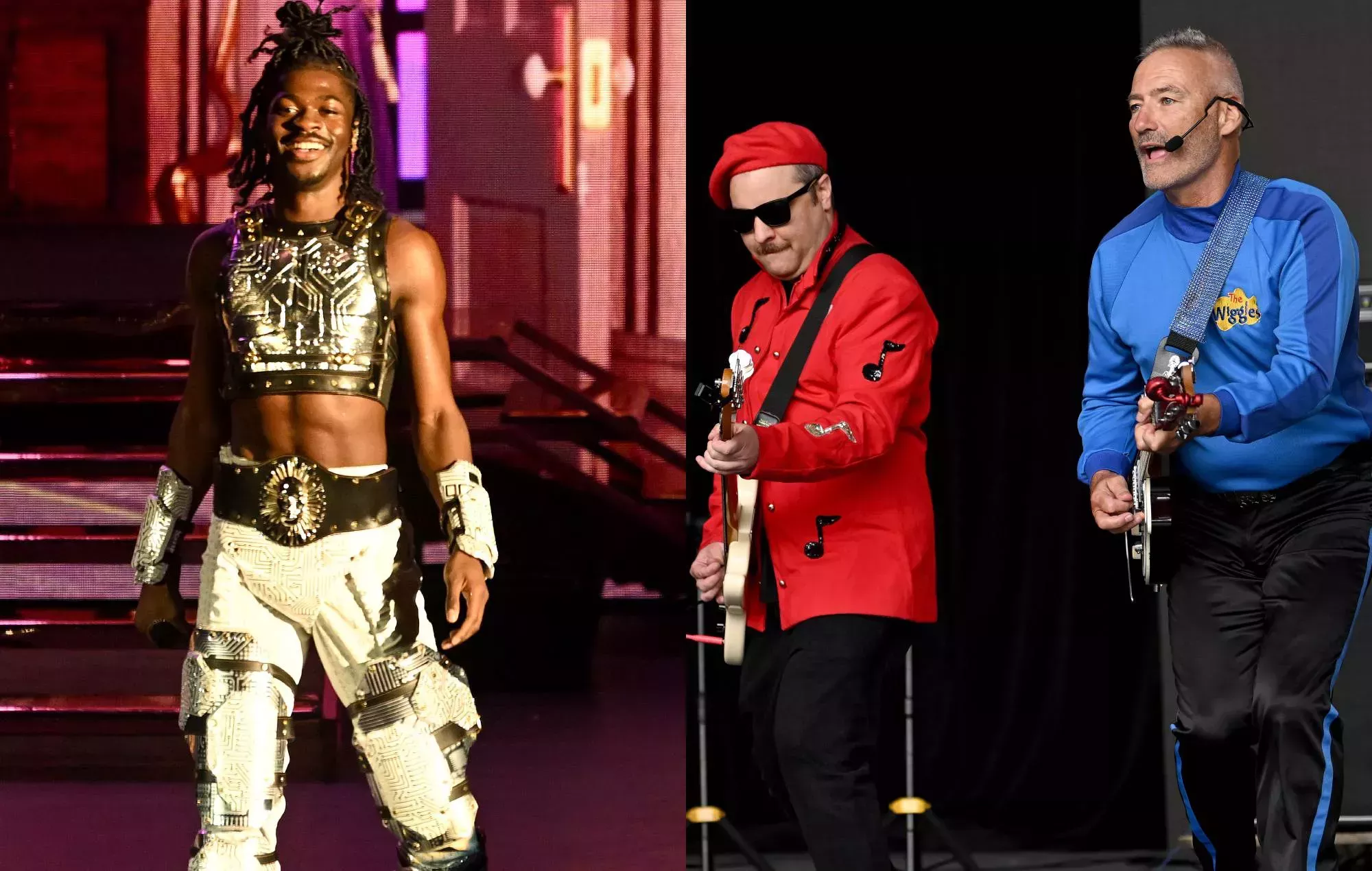 Lil Nas X fue visto con los animadores infantiles australianos sosteniendo uno de los característicos jerseys de colores del grupo en un post que anunciaba una colaboración entre ambos en el Festival Falls de Australia.