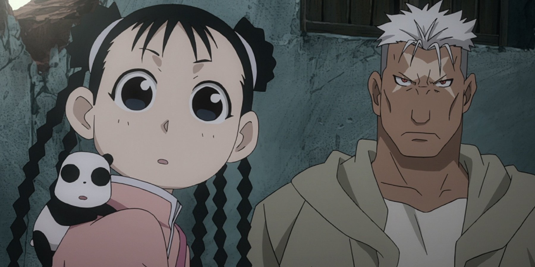 Este episodio está por todas partes. Para empezar, Scar regresa a su escondite y conoce no sólo a Yoki, sino también a una chica xingesa llamada May y a su pequeña amiga panda, Shao Mei. En Rush Valley, Winry repara el automail de Ed, y el grupo de Ed se encuentra con Prince Ling de Xing allí mismo en la calle polvorienta.
