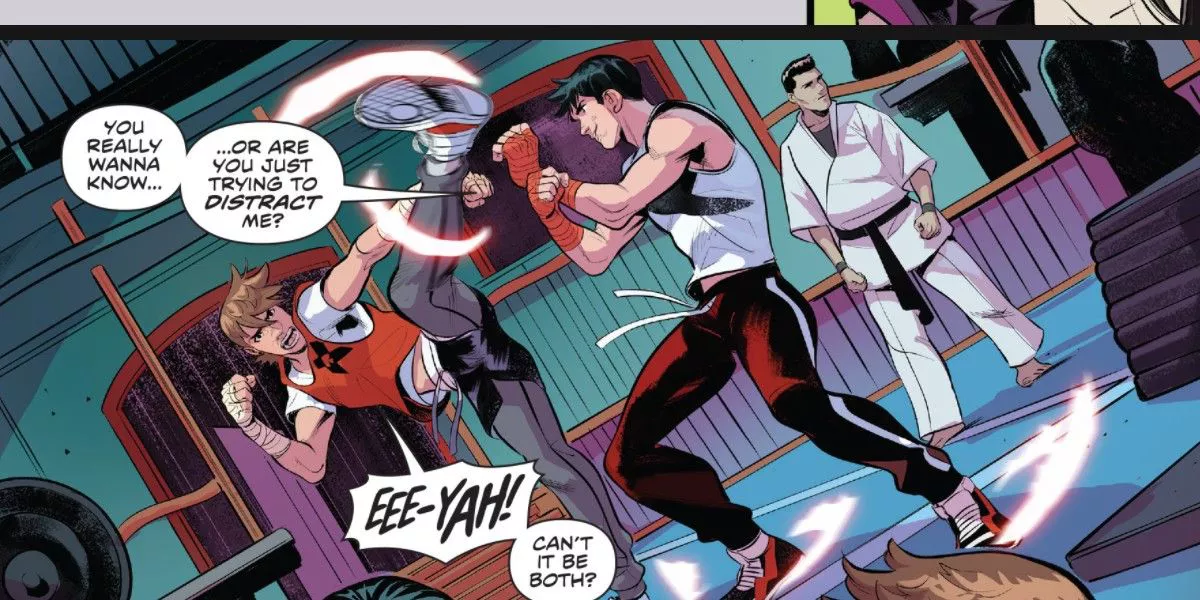 Mientras Jason felicita a Rocky por sus técnicas y su rango de patadas, Rocky se toma un momento para confiar en el anciano Red Ranger. Rocky tiene un momento de síndrome de impostor y piensa que Jason podría estar decepcionado de él porque no es un líder aunque sea un Red Ranger. Típicamente el rojo significa el color del líder de un equipo de Ranger, pero Tommy, el White Ranger, es el líder de los actuales Power Rangers de la Tierra.