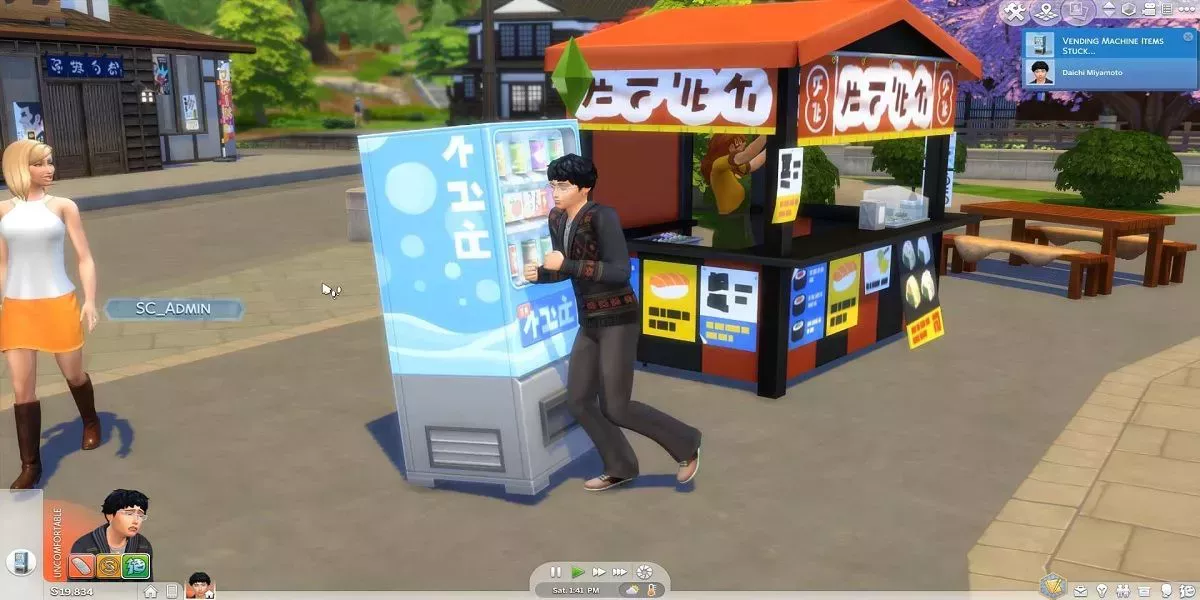 Cuando un Sim sacude una máquina expendedora en un intento de recuperar un artículo atascado, puede ser aplastado, haciendo que reciba el moodlet "Magullado y golpeado". Si son aplastados por otra máquina expendedora antes de esperar a que este moodlet desaparezca, morirán permanentemente.