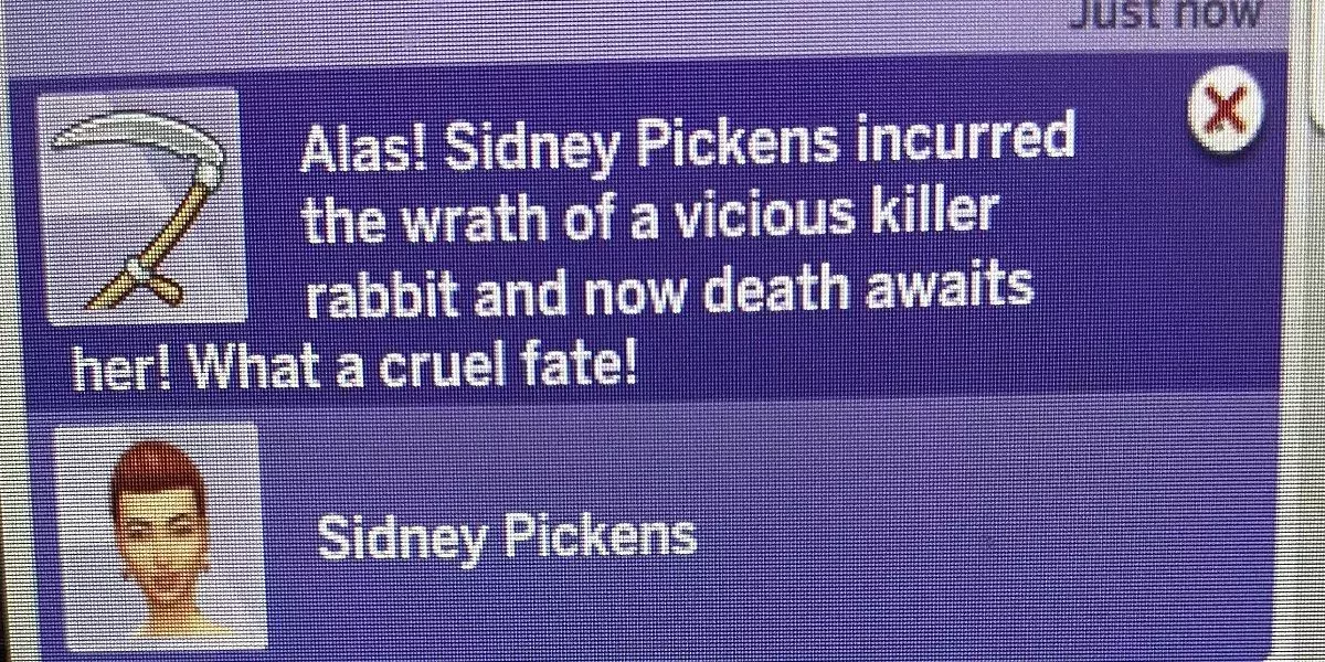 Los Sims que tienen una baja relación con los conejos o las gallinas tienen la posibilidad de ser atacados por ellos, lo que infligirá al Sim el moodlet Aturdido. Si son atacados de nuevo antes de que este moodlet desaparezca, la gallina o el conejo matarán al Sim directamente.