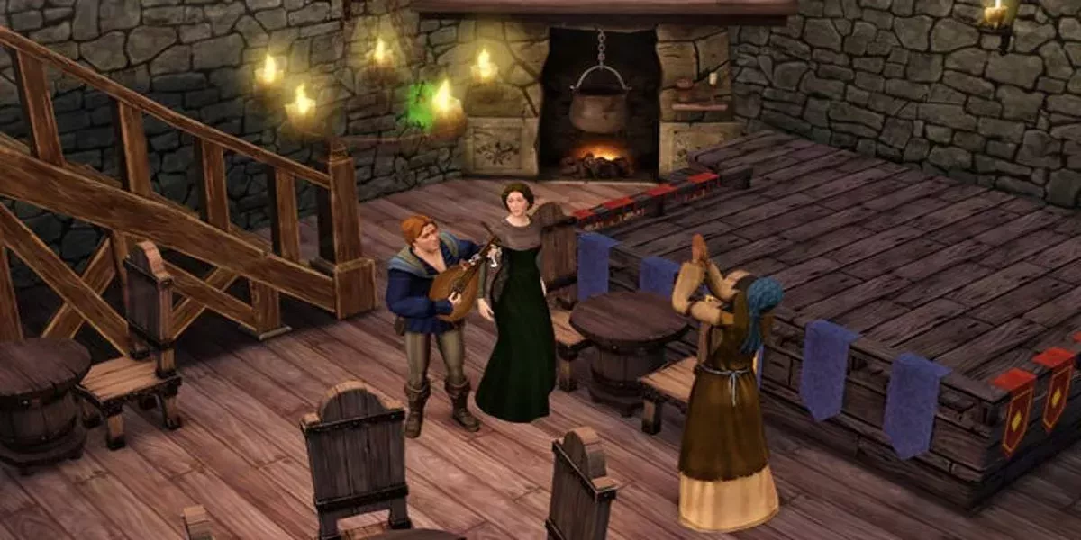 La vida en la época medieval ha sido un tema apasionante para la ficción mucho antes de que Maxis la convirtiera en una simulación. Irónicamente, una clase de héroe está dedicada a esa parte particular de la vida. Situado en una taberna junto al mercado, el bardo utiliza su laúd para tocar canciones para otros sims. Los bardos también pueden escribir poemas para recitarlos u obras de teatro más complejas para las que reclutan actores.
