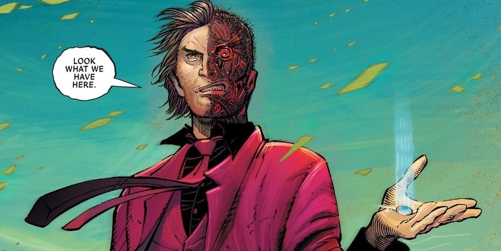 Harvey Dent es un hombre de dos mentes en casi todos los temas. El jefe del crimen, con sus cicatrices, quedó terriblemente desfigurado por la mafia en un ataque que dejó su mente en peor estado que su cuerpo. Para tomar una decisión de cualquier tipo, lanza una moneda al aire, dejando la respuesta al azar.