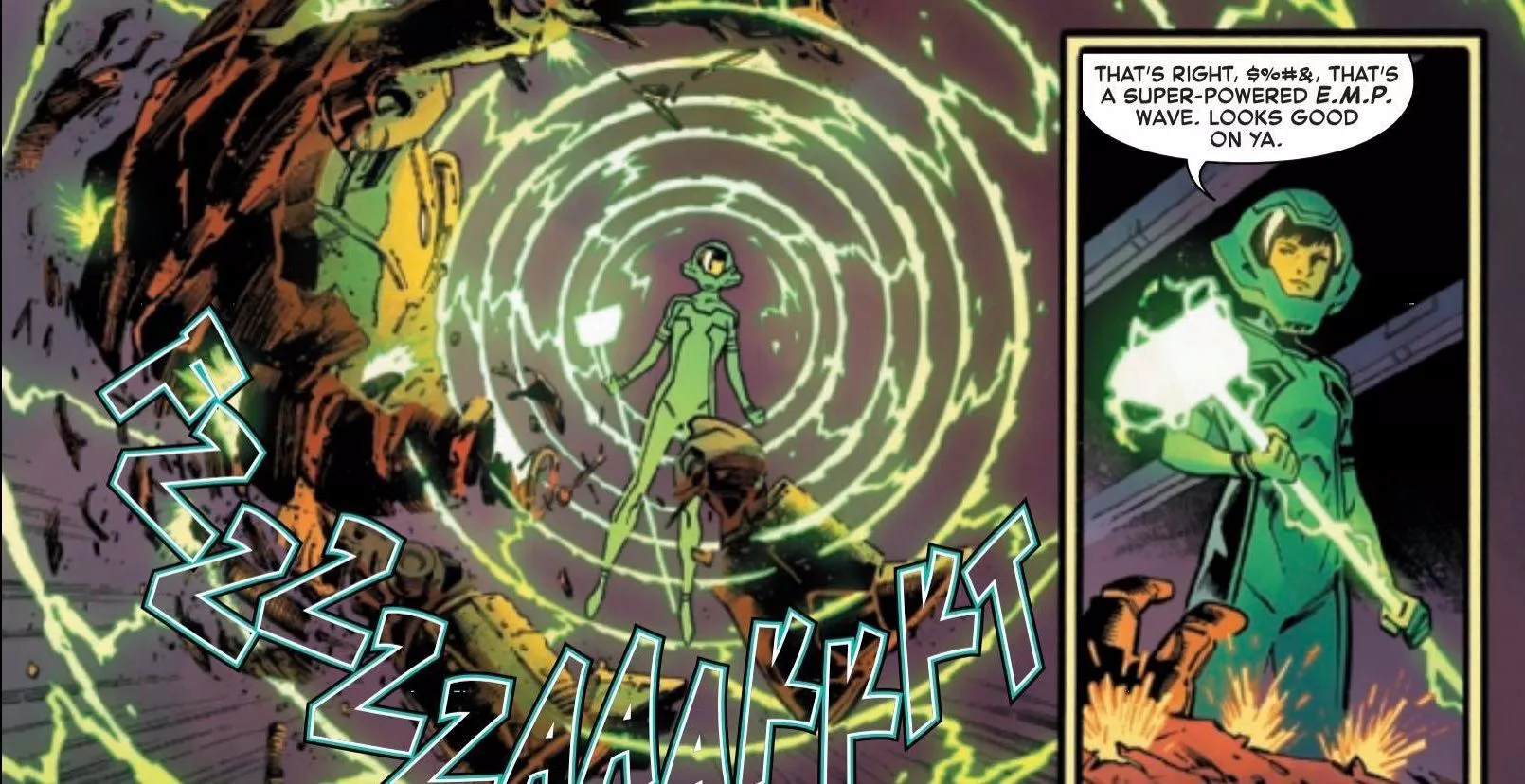 Con esto, la Capitán Maravilla reunió su propio equipo de Vengadores compuesto por War Machine, Hazmat y Spider-Woman, y cada uno de ellos tiene su propio martillo verde brillante. Y ahora, el Capitán Marvel #20 nos muestra lo poderosos que son realmente estos Vengadores acusadores.
