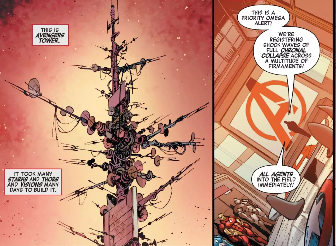 La base oculta de Avenger Prime se ve en el Free Comic Book Day Avengers/Hulk #1 de Jason Aaron, Iban Coello, Brian Reber y Cory Petit de VC. Dentro de un agujero negro en el nexo de todas las realidades posibles, hay un mundo conocido como la Cantera de Dios. Su propio suelo está compuesto por "dioses en descomposición". En este mundo, hay una copia de la Torre de los Vengadores que se eleva hacia el cielo. Fue construida por Vengadores de todo el multiverso, incluyendo numerosas versiones de Thor, Visión y Iron Man. Dentro de ella, un único Vengador monta guardia. Conocido como Avenger Prime, este guardián envÃa ejércitos de cyborgs no muertos llamados Deathloks para viajar a diferentes universos y salvarlos de las amenazas que matan la realidad.