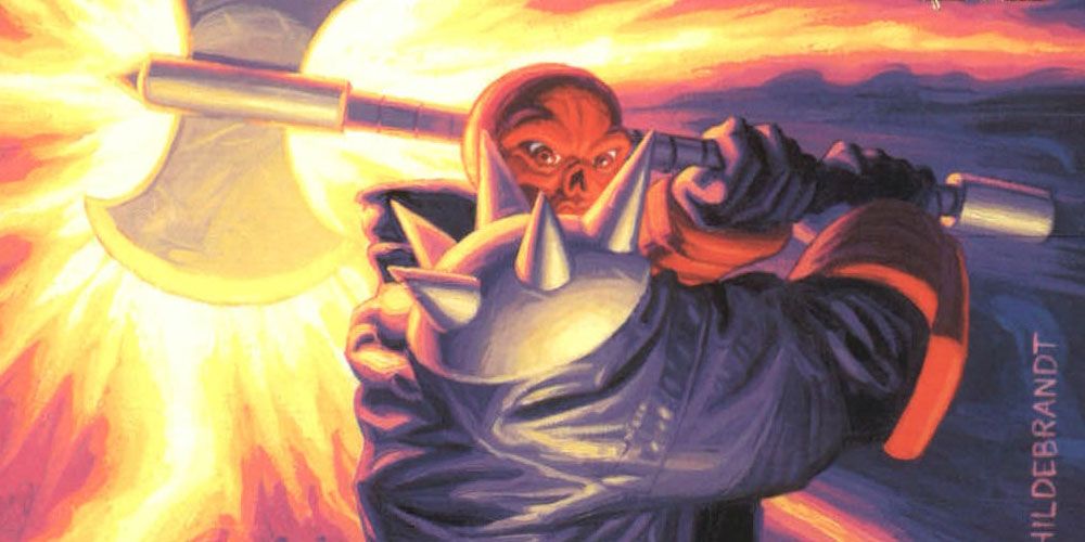 Bloodaxe sólo gritos de los años 90. Era un villano en la época en que Eric Masterson tenía la identidad de Thor, y más tarde luchó contra él cuando era Thunderstrike. Fue poseído por el hacha del verdugo que lo transformó, como lo hizo el martillo de Thor.