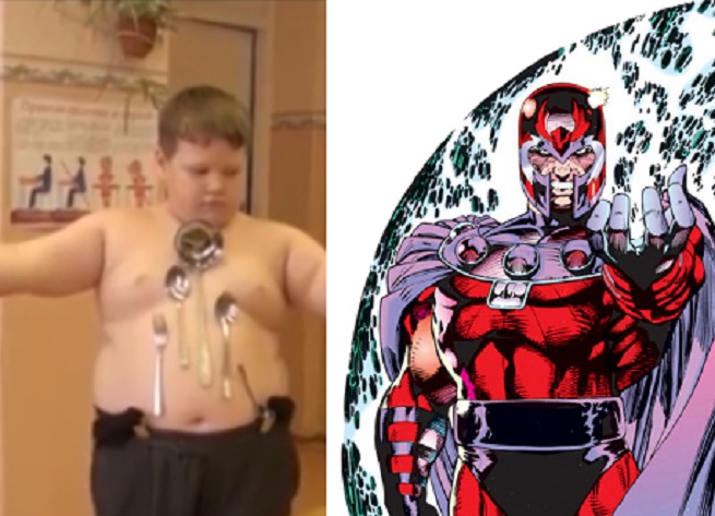 El niño ruso que puede atraer el metal con su cuerpo debe sus habilidades a un accidente al ser electrocutado. Recomendando que ninguno lo intentéis, puesto que lo máximo que conseguiréis es que la cubertería o alguna moneda extra se quede pegada en vuestro cuerpo este es el vídeo del Magneto real, el niño ruso que puede atraer el metal con su cuerpo.
