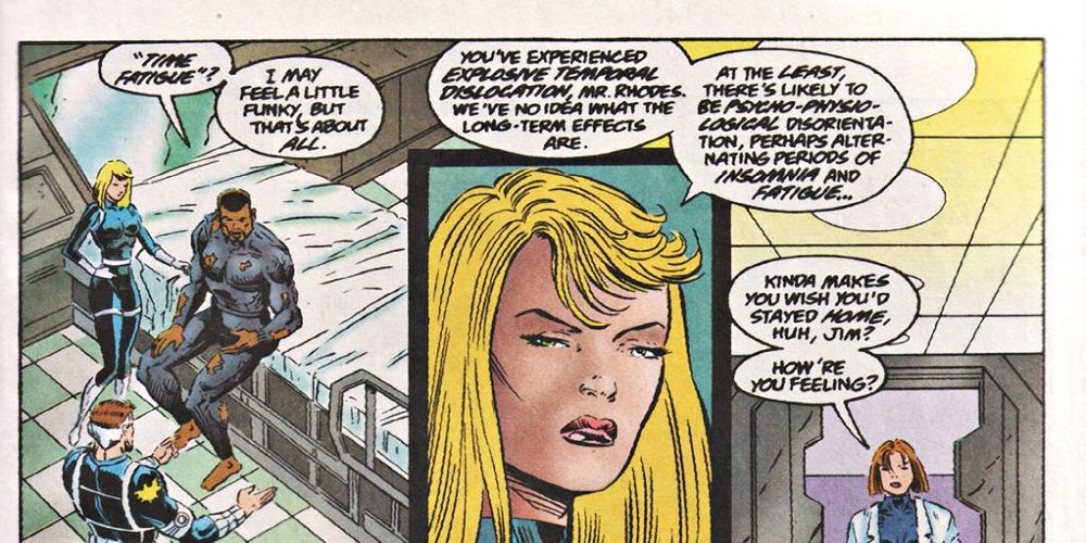 Al final de la serie, James Rhodes había llamado la atención de SHIELD. Nick Fury ya no estaba a cargo, y SHIELD quería saber exactamente qué tipo de arma era la Warwear. Sin embargo, no se preocuparon de preguntar, sino que trataron de someter a Rhodes a un montón de pruebas físicas sin su consentimiento. A Rhodey no le gustó mucho esto, y como resultado, se vio obligado a luchar contra un grupo de agentes blindados de Shield, conocidos como Mandroids. Gracias al poder de su traje, fue capaz de eliminarlos a todos.