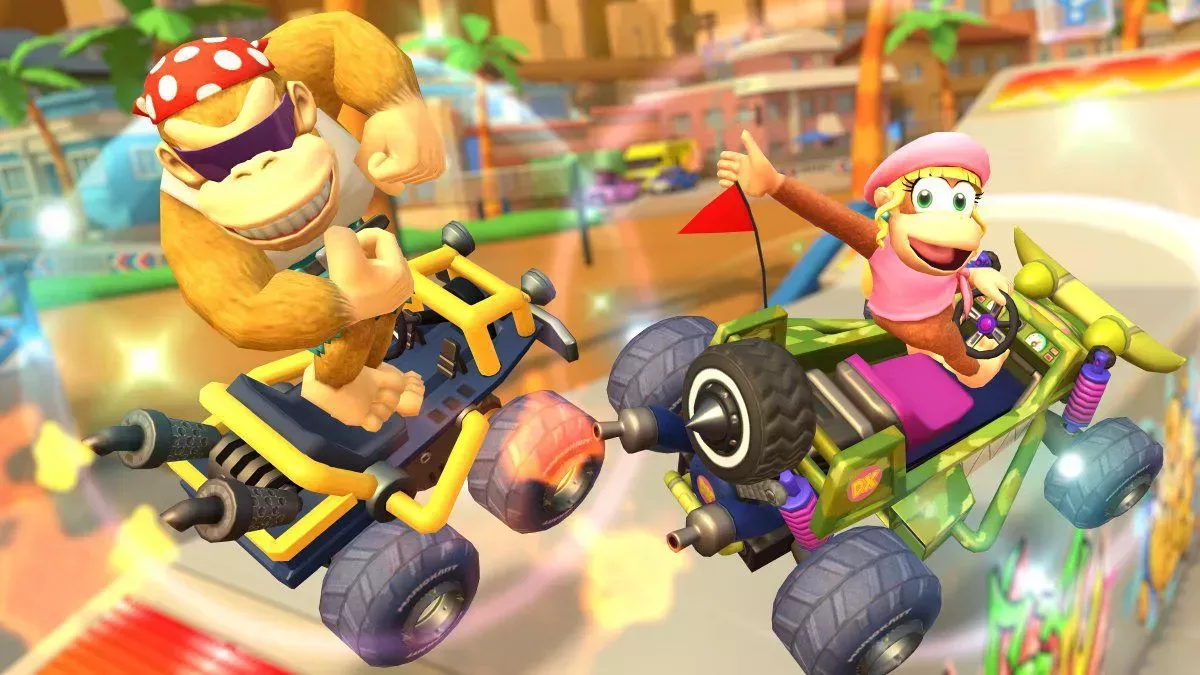 sólo tiene un Kong: Donkey. tiene (incluido un extraño piloto de sprites Donkey Kong Jr. de Super NES). Eso no solo es una falta de respeto a Diddy Kong, que en su día protagonizó su propio juego de carreras, sino también a Dixie y Funky, que aportan niveles de monería muy necesarios. ¿Qué mejor manera de presumir de tener un nuevo modo Funky que añadiendo un par de Kongs más, favoritos de los fans?