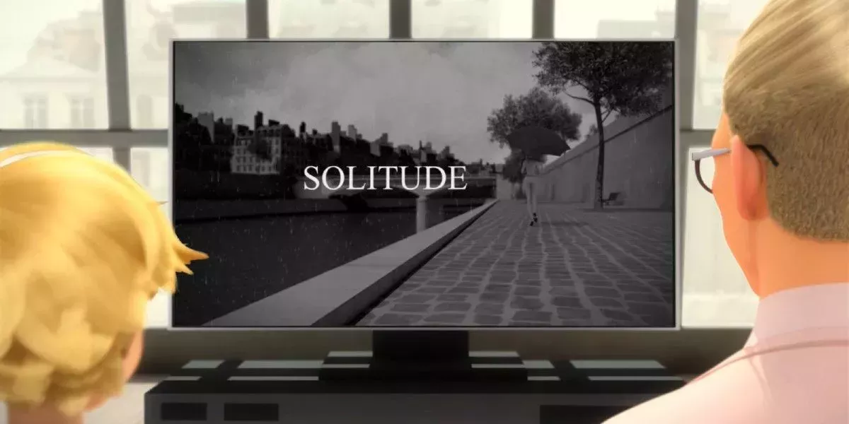 Tras descubrir que Adrien se ha escapado de casa para ver la única proyección de la película Soledad, en la que aparece la madre de Adrien, Emilie, Gabriel se da cuenta de lo distante que ha estado últimamente y se ofrece a ver la película con su hijo. Antes de que empiece la película, Gabriel le pide a Adrien que sea más comunicativo con sus emociones y que hable si tiene algún problema. Aunque se puede decir que Gabriel es un padre emocionalmente distante en el mejor de los casos, es posible que si Adrien hablara más por sí mismo, Gabriel le escuchara.