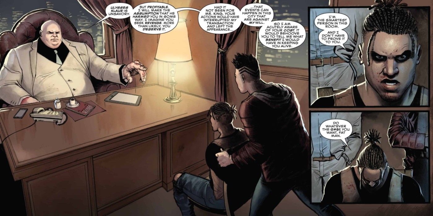 Kingpin tiene la vista puesta en todo tipo de cosas. Es un señor del crimen por una razón, ya que siempre puede ver el panorama general. Erik Killmonger formó parte de ese cuadro cuando Kingpin quiso reunir a un grupo de mercenarios.