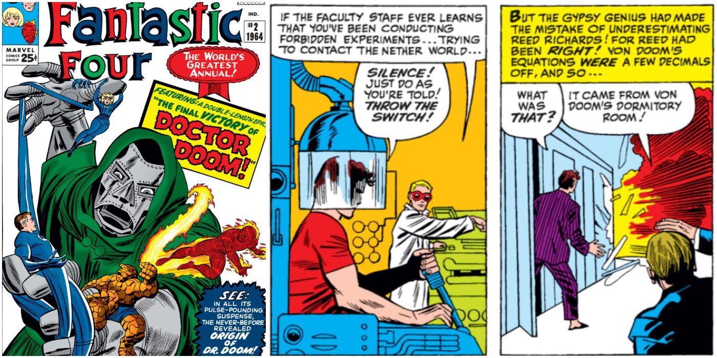 Fantastic Four Annual #2 es uno de los números más importantes de la historia de Doom. Apropiadamente, este número doble contiene dos historias y dos casos en los que Doom engaña a la muerte. La primera historia es el hasta ahora desconocido origen de Doom, incluyendo cómo durante sus años universitarios, una explosión en un accidente de laboratorio le dejó cicatrices en la cara. Por ello, lleva una máscara para ocultar lo que queda de su rostro.