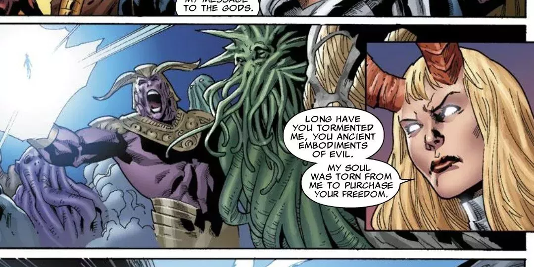 Con una cuidadosa planificación y un poco de viaje en el tiempo, Illyana pone en marcha una serie de acontecimientos que conducen a la liberación de los Dioses Antiguos, así como al regreso de otro ser parecido a un dios. Desbloqueando todo el poder de Legión, Magik libera al loco de su confinamiento para que entregue un mensaje a algunas deidades abandonadas, que Legión resumió astutamente haciendo pedazos a los Dioses Antiguos. Magik estuvo a punto de acabar con el mundo varias veces, y todo por una pequeña venganza.