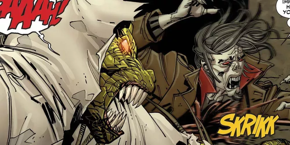 Morbius se pone frenético cuando el cautivo Connors dispensa sangre a través de los conductos de ventilación, lo que provoca que el Vampiro Viviente ataque a los demás científicos. Por su empeño en curar al villano, Morbius es encerrado en la Balsa por Spider-Man.