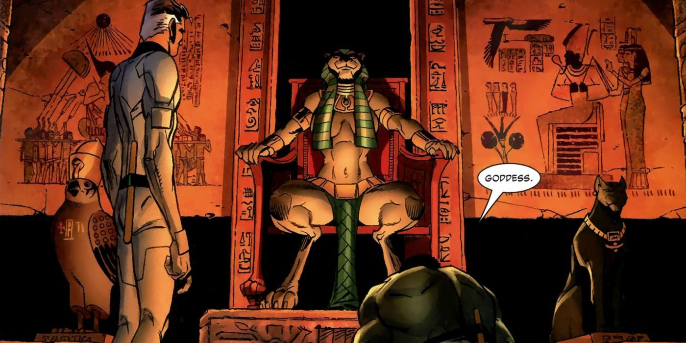 Bast es una figura importante en la historia de Marvel Comics, a pesar de sus pocas apariciones. Ella es el Dios del Placer, la Poesía, la Música y la Danza, así como el Dios Pantera de Wakanda. Bast es una deidad felina que apareció por primera vez en Fantastic Four #52 en 1966. Es parte del mismo conjunto de Heliopolitanos de los que Khonshu es originario.