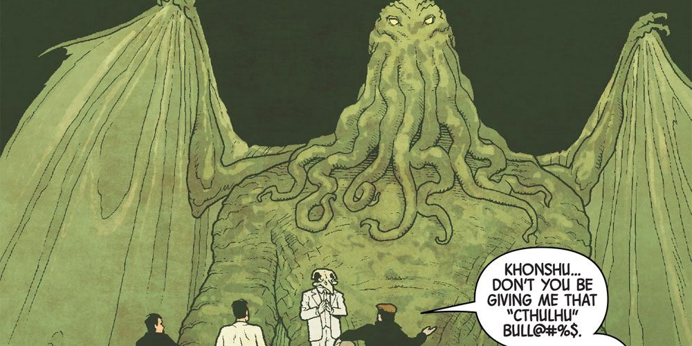 Pero la mitología de Cthulhu también forma parte del Universo Marvel. Muchas criaturas diferentes en el panteón del mito Lovecraftiano pueblan el Universo Marvel, como el hombre mismo, que debutó en el Caballero de la Luna 191 y apareció junto a Khonshu.
