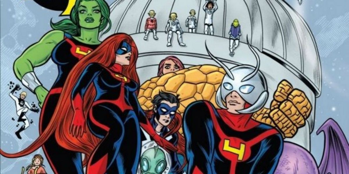 También es una de las alineaciones más poderosas en toda la historia de Marvel. Jennifer lleva un leotardo púrpura y blanco que en su diseño recuerda mucho a su traje original de los Cuatro Fantásticos, especialmente con el cuello y los guantes blancos.