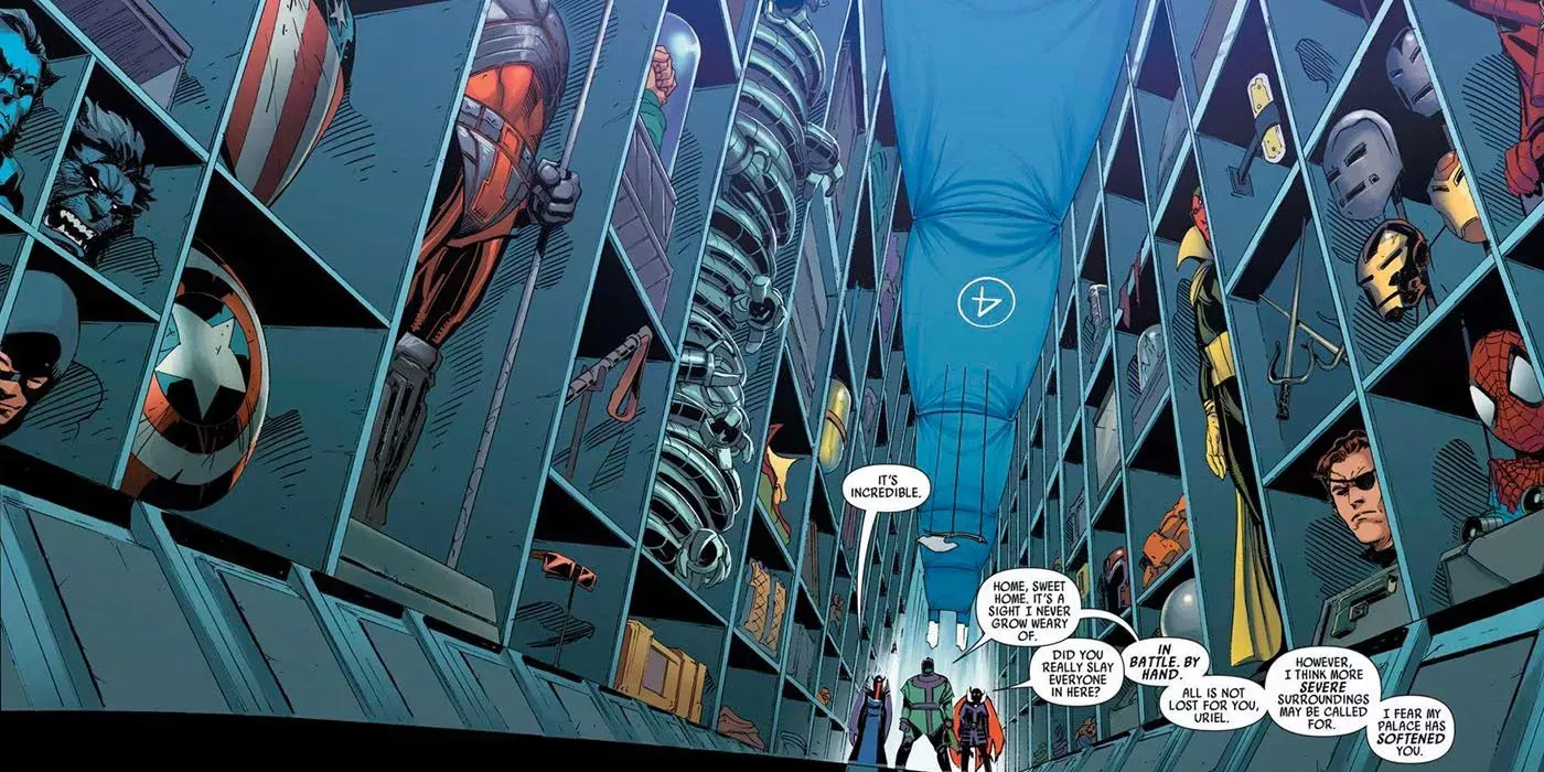 Kang ha coleccionado piezas de tecnología y recuerdos de todas las líneas temporales que ha conquistado. Tiene copias del escudo del Capitán América, la armadura de Iron Man y el visor de Cíclope. Tiene las cabezas de varios héroes, como Nick Fury y Hank "Beast" McCoy. Pero las partes más peligrosas de su colección son mucho más poderosas que los símbolos.