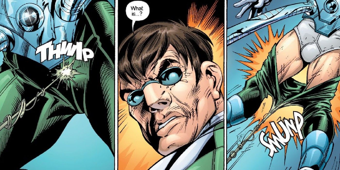 Los dos están en igualdad de condiciones, y Doc Ock incluso lanza a Spidey a un lado. Sin embargo, Spider-Man tiene un truco bajo la manga: las bromas infantiles. Cuando Doc Ock está a punto de matar a Hammer, Spidey le baja los pantalones usando sus telarañas. Esto distrae a Doc Ock, y Spider-Man lo noquea mientras se burla de la ropa interior elegida por el villano. La prensa, mientras tanto, lo tiene todo grabado.