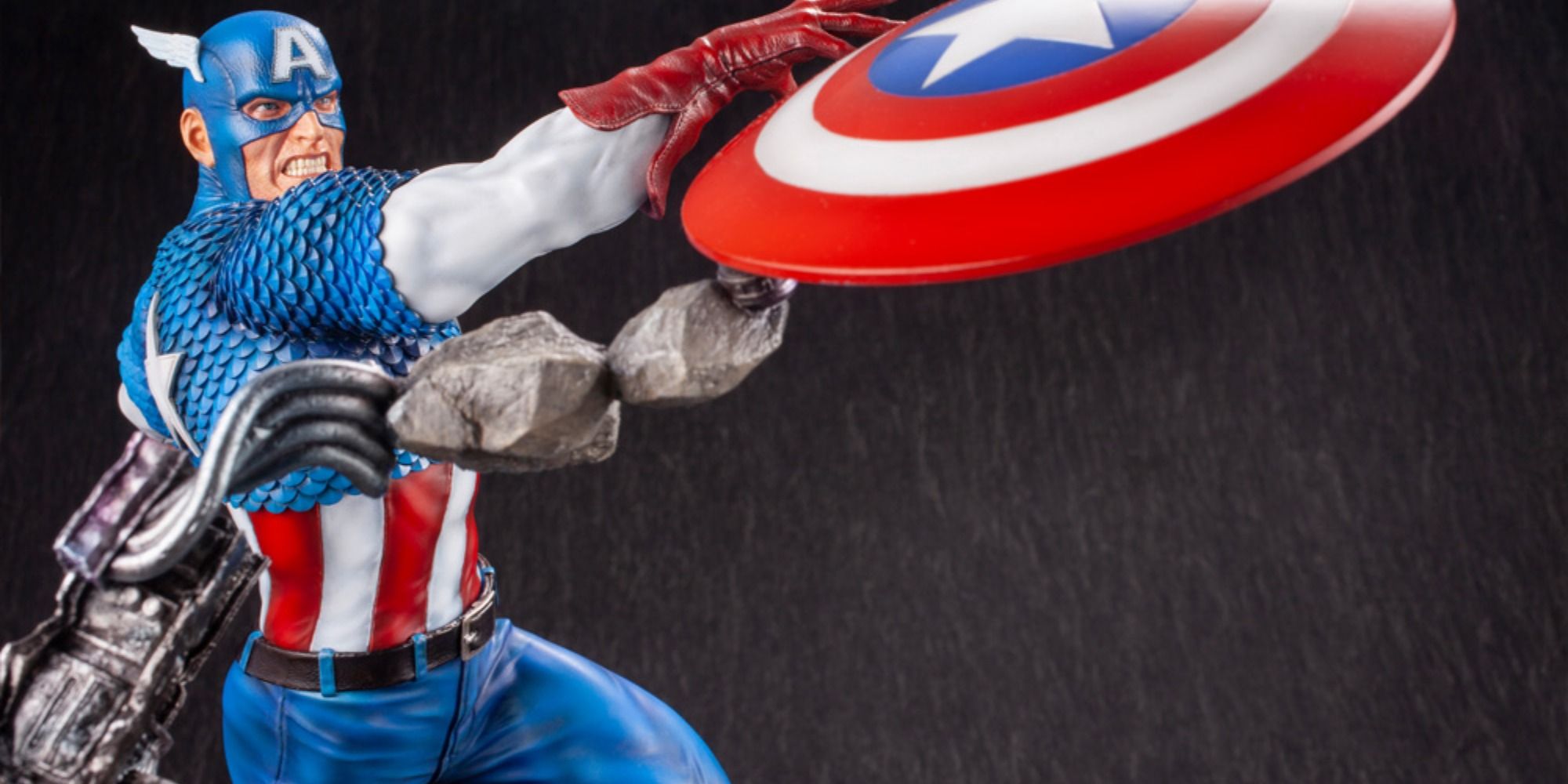 Los coleccionistas en asociación con Kotobukiya han desarrollado una dinámica estatua del Capitán América lanzando su emblemático escudo. La estatua rinde homenaje a la versión clásica del Capitán América con su casco con una "A" gigante y alas.