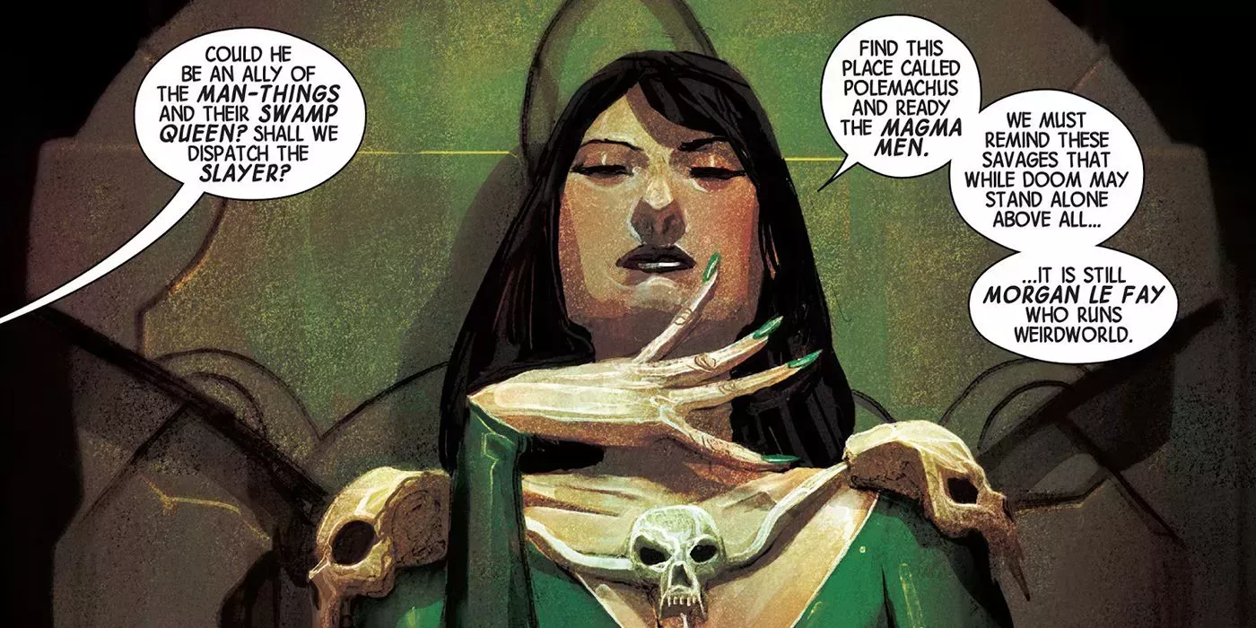 Considerada una de las mayores hechiceras de la Tierra, Morgan le Fay suele poner en apuros a otros personajes de Marvel porque su sangre de hada la hace inmortal. Porejemplo, durante el Reinado Oscuro, viajó al futuro con un ejército de demonios dispuesto a conquistar el mundo. Para derrotarla, Doom no pudo matarla utilizando la magia, sino que se limitó a enviarla al pasado.